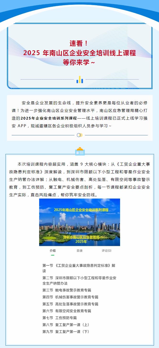 关于开展2025年度南山区企业负责人及安全管理人员再教育培训的通知