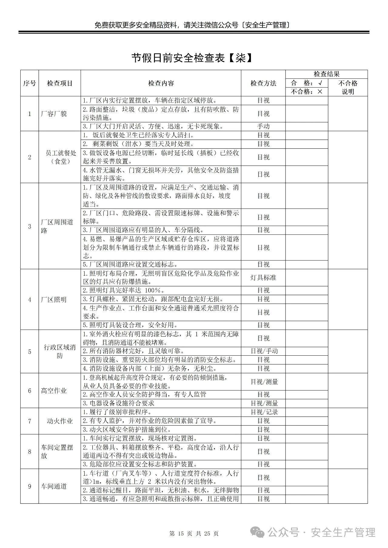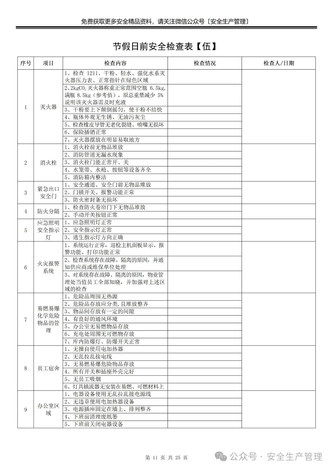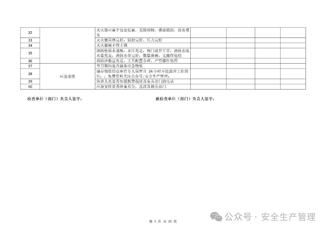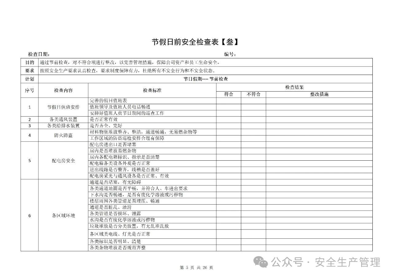 节前节后安全检查表汇编