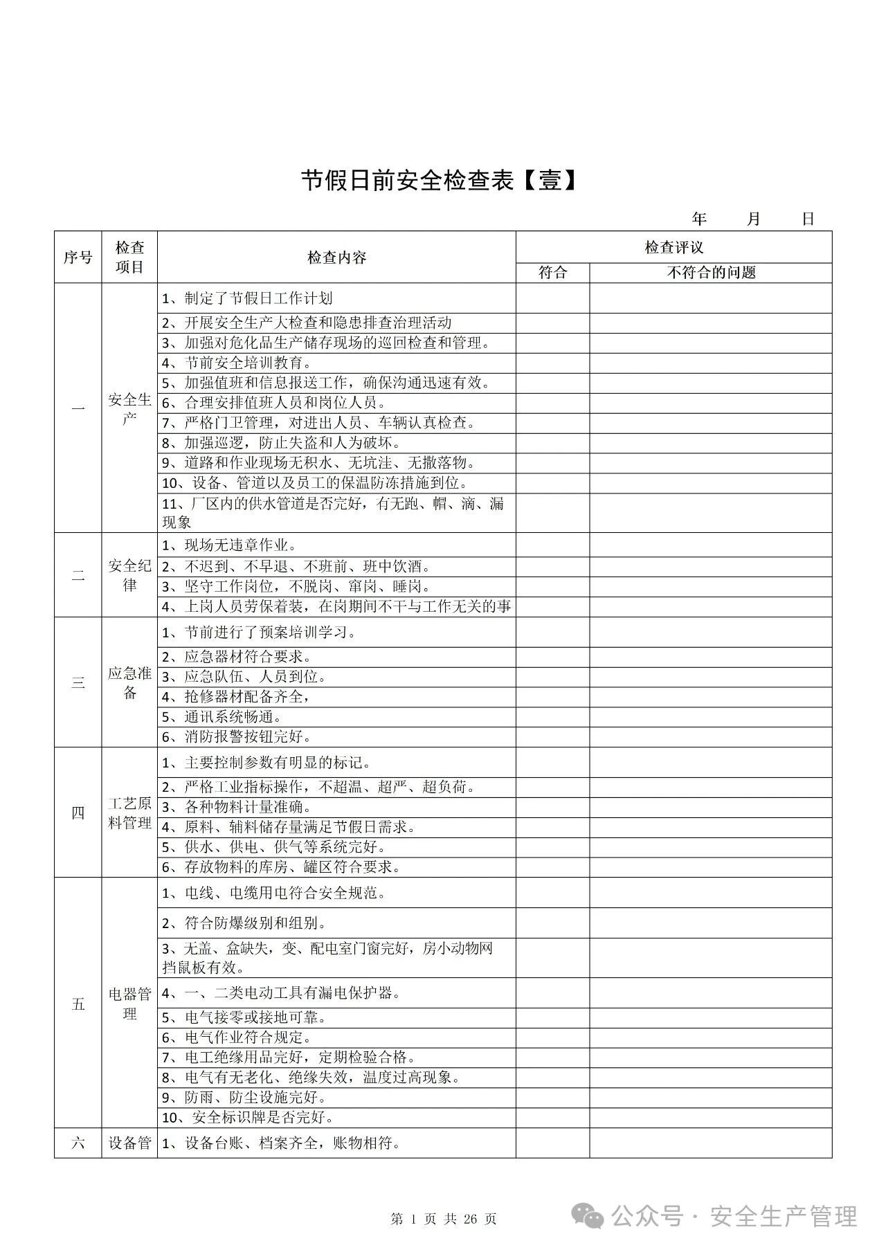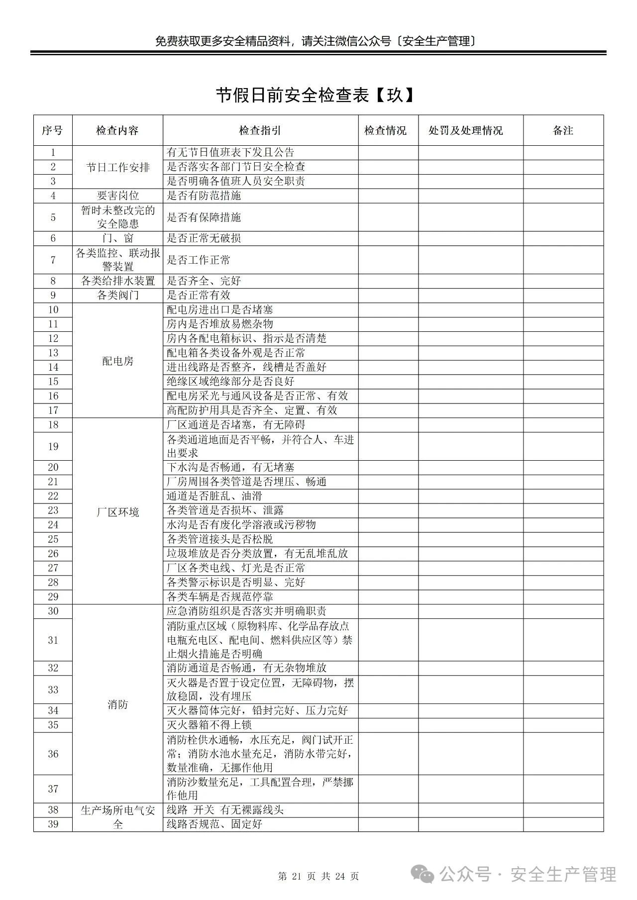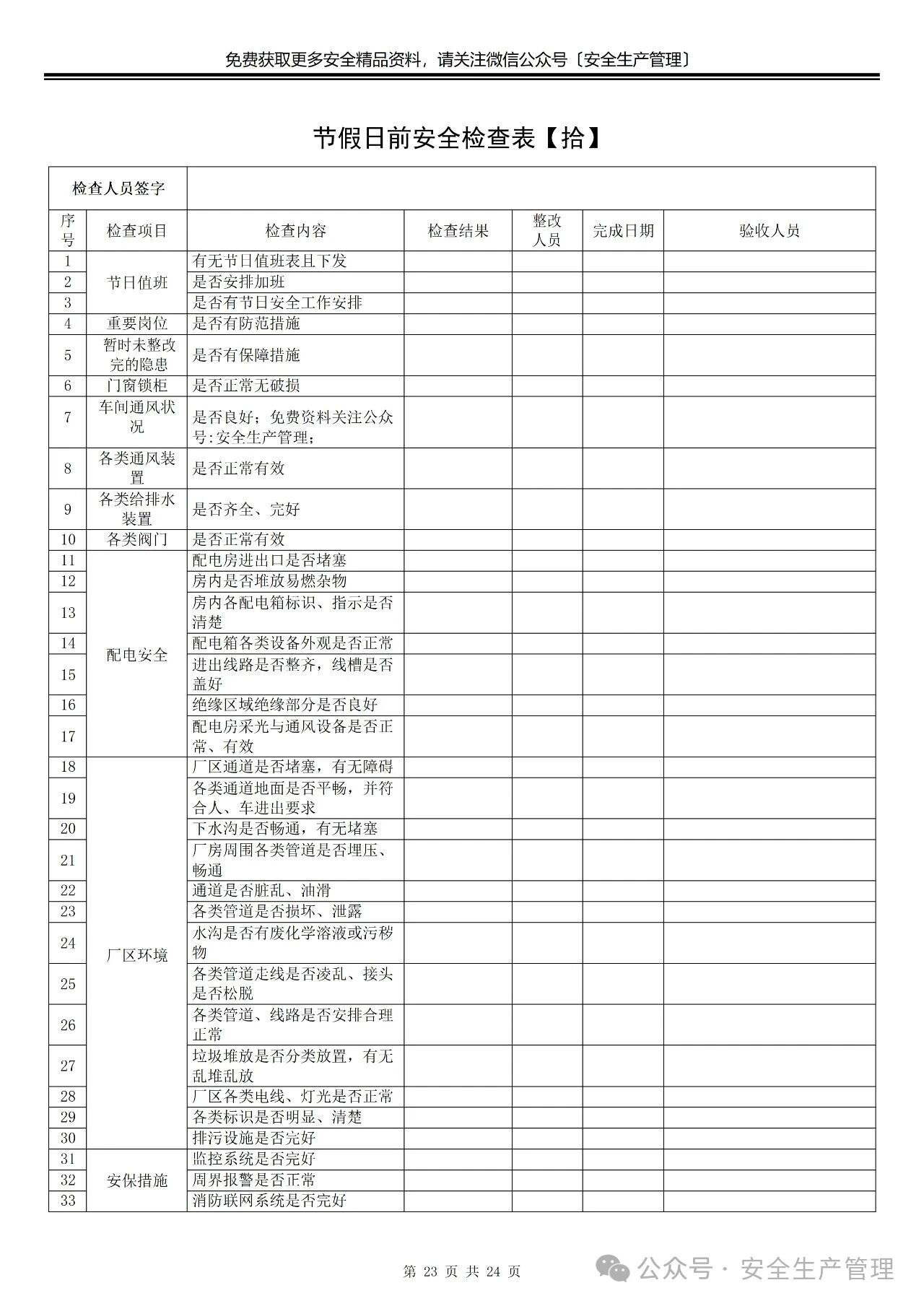 节前节后安全检查表汇编