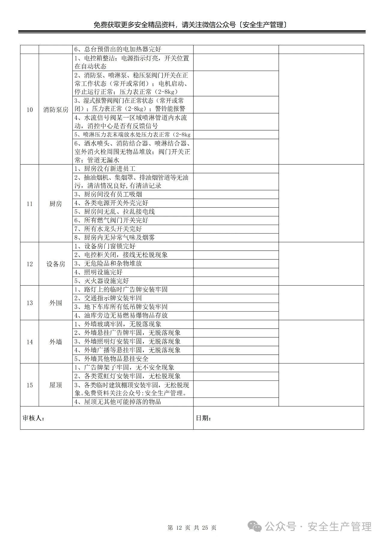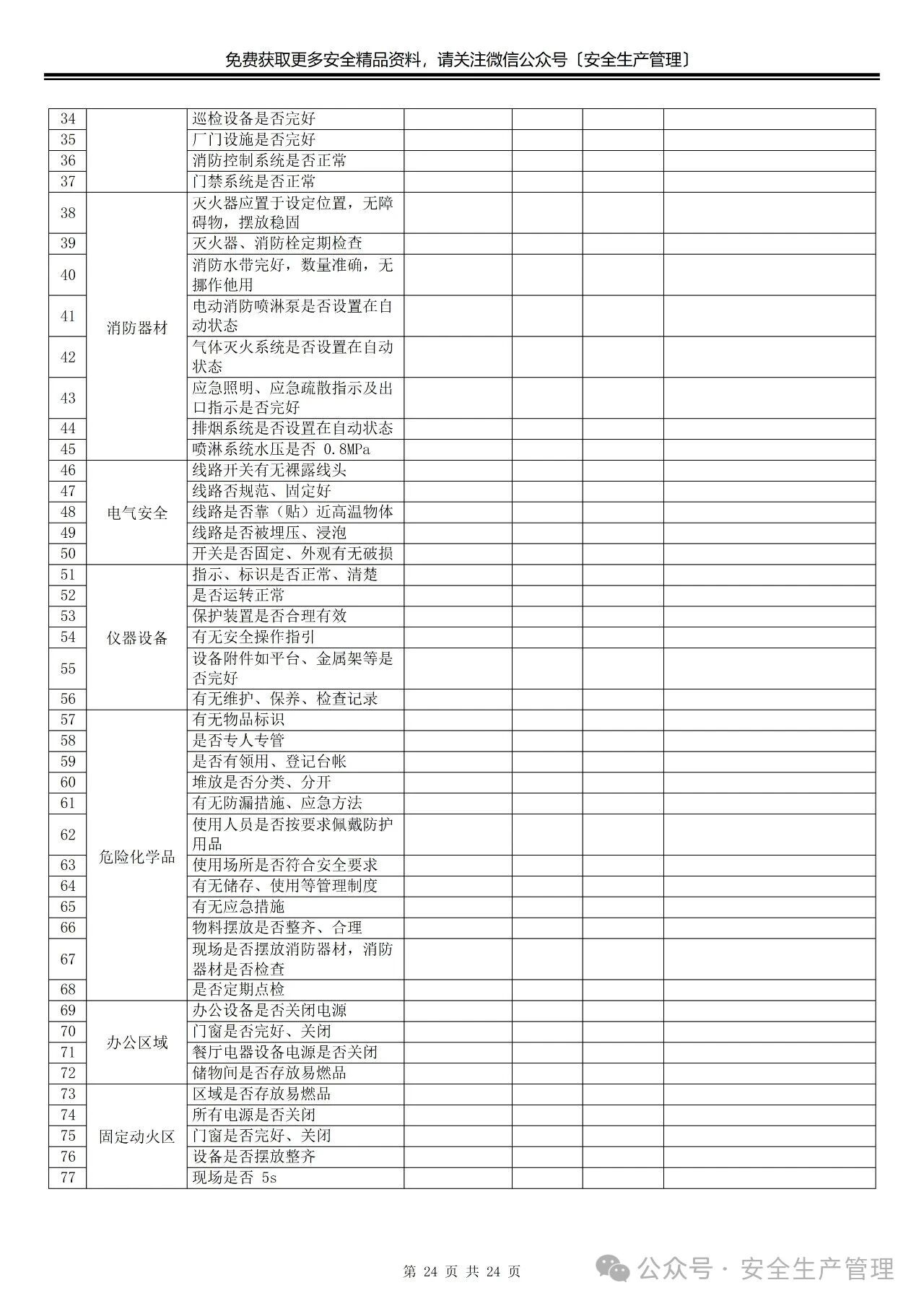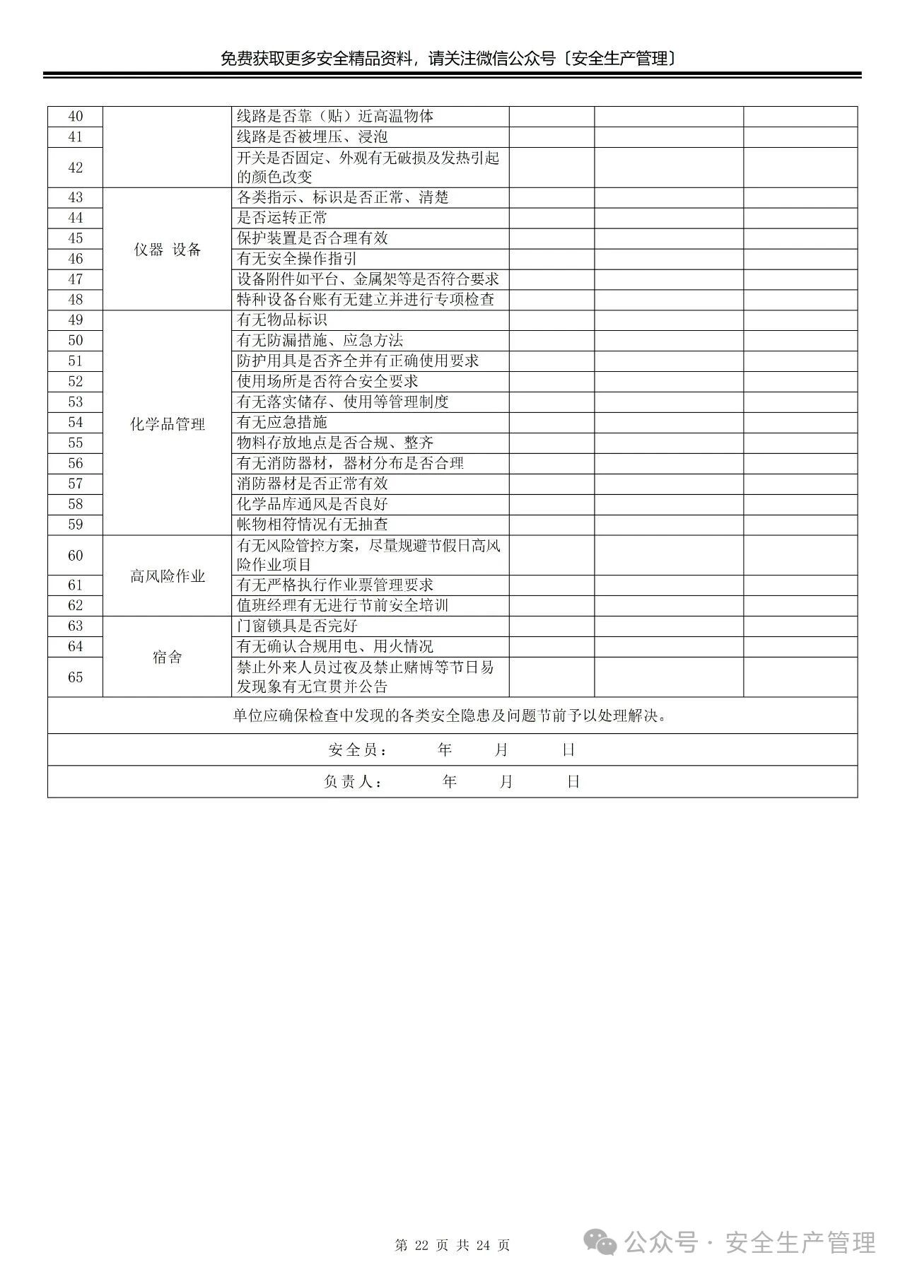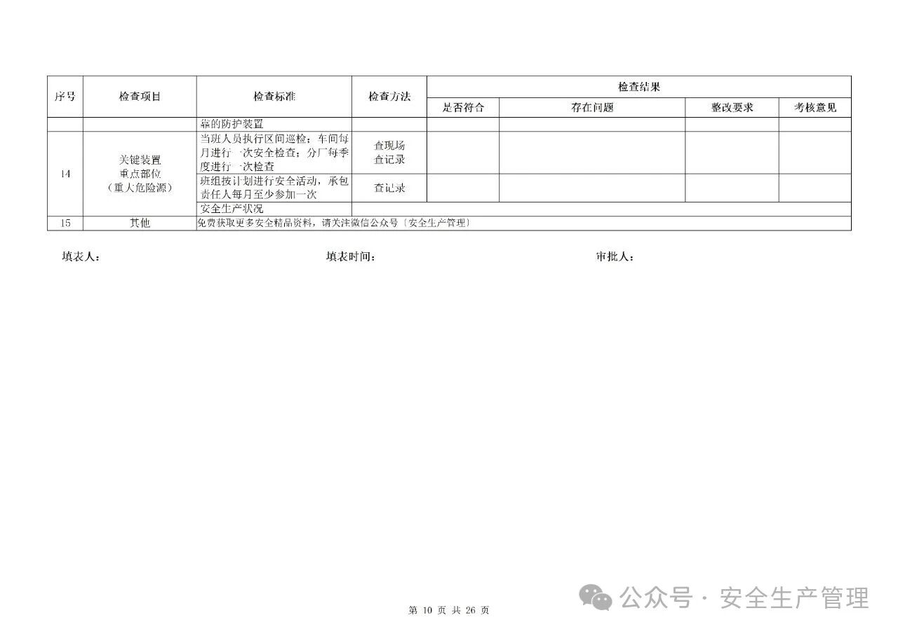 节前节后安全检查表汇编