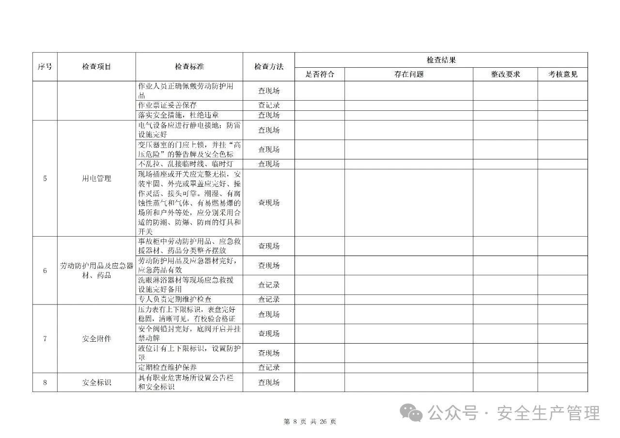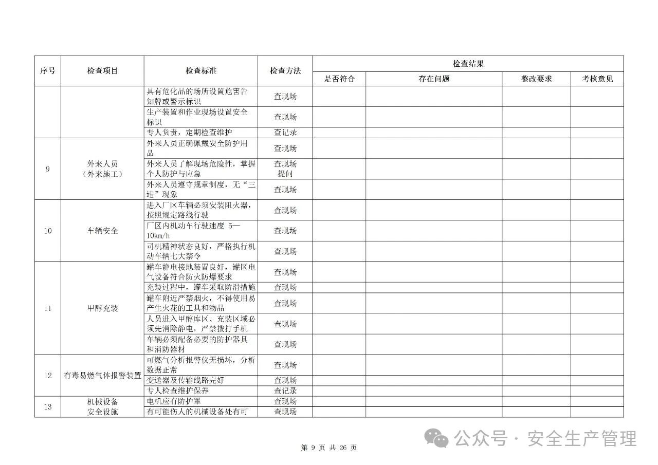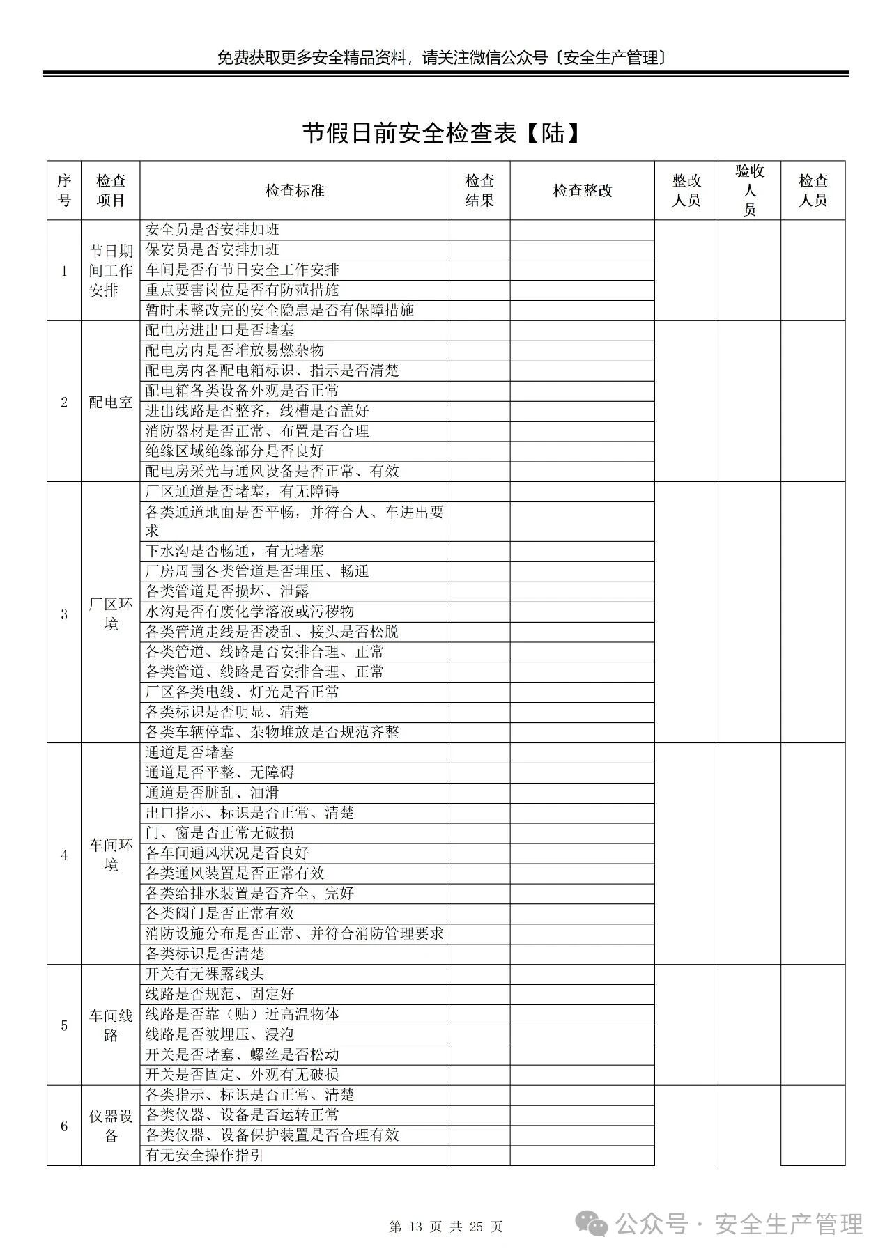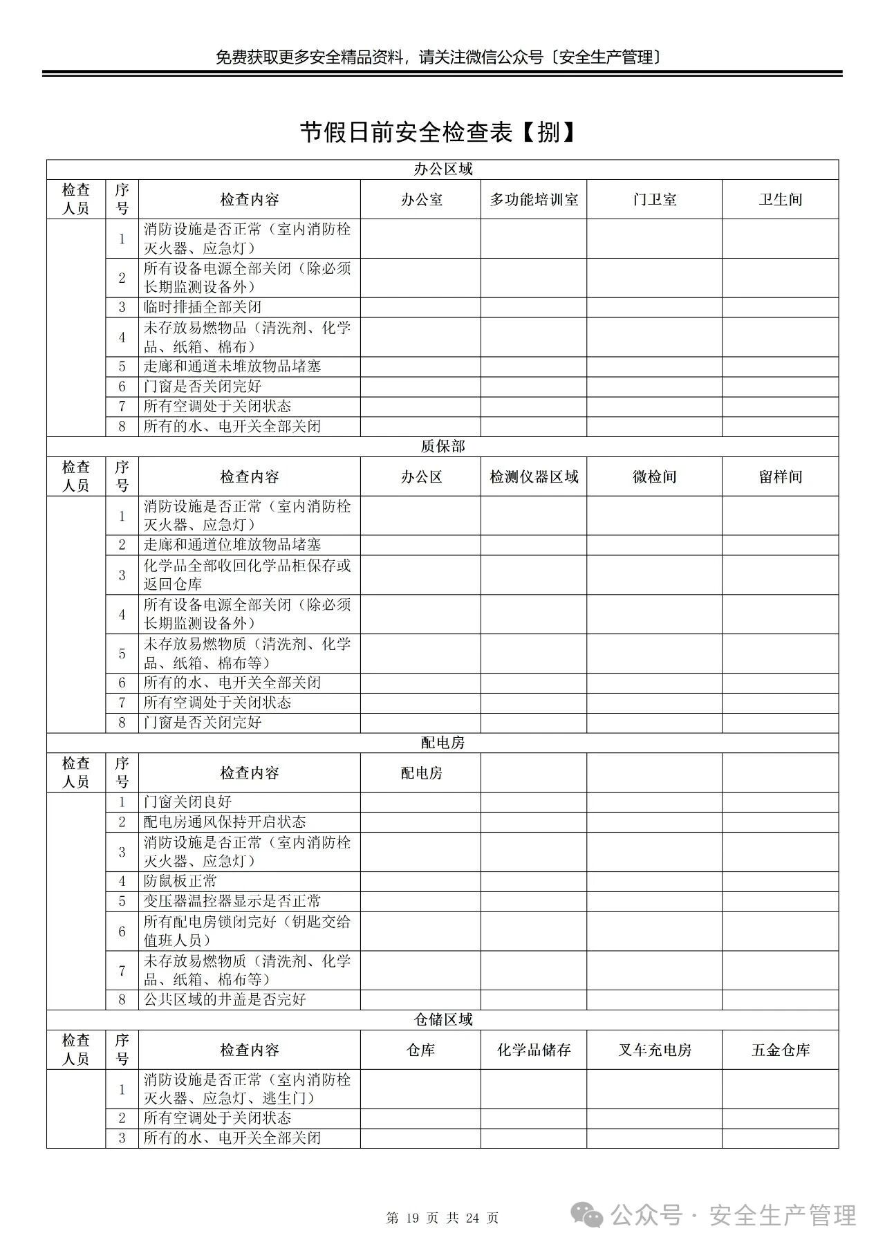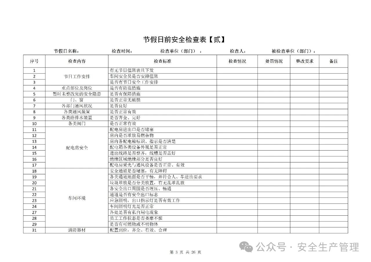 节前节后安全检查表汇编