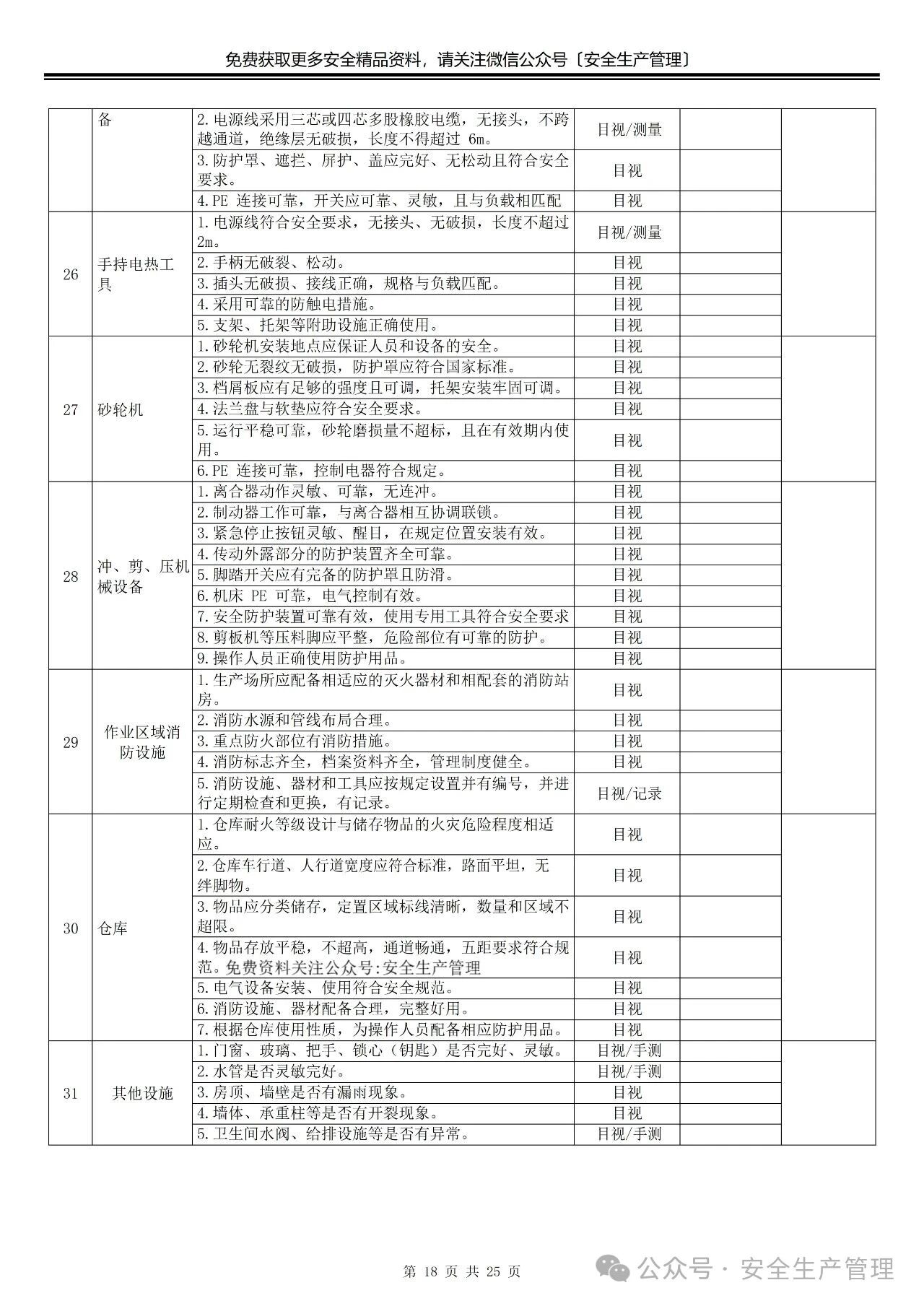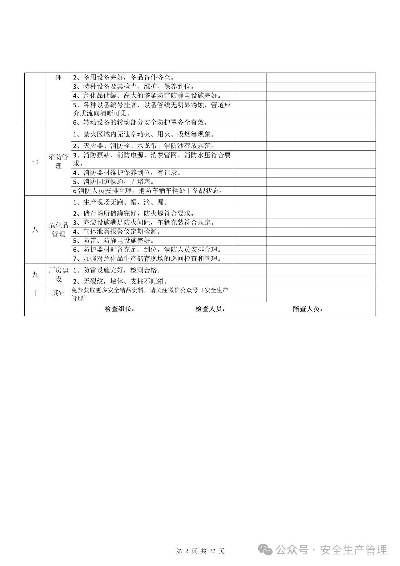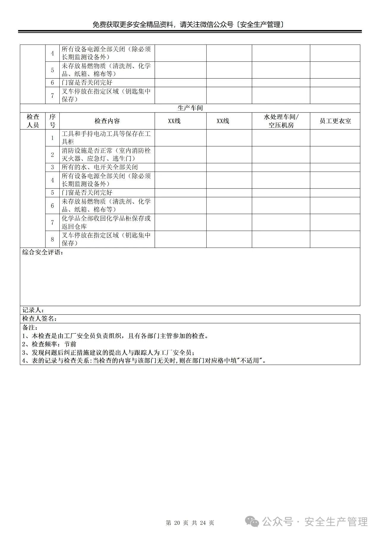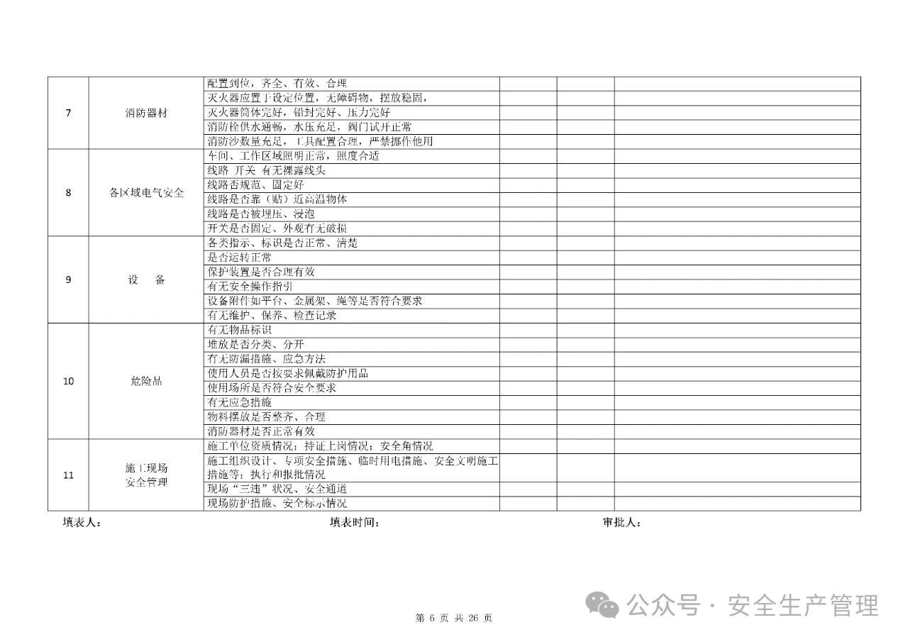 节前节后安全检查表汇编